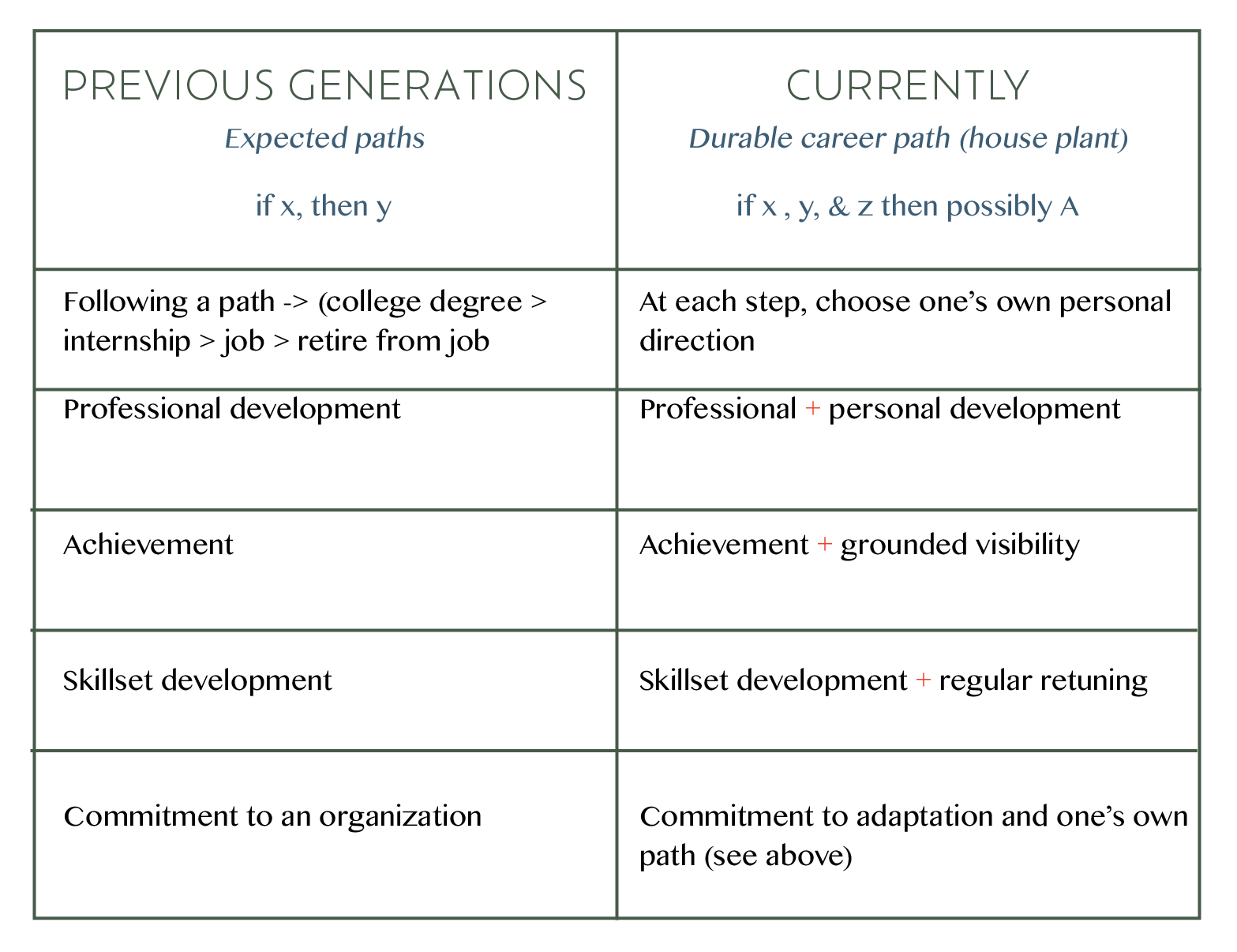 Career development has parallels to artistic development. Yet, career durability is more reliant on deep development across many areas, rather than quick ascension based on pleasing people.